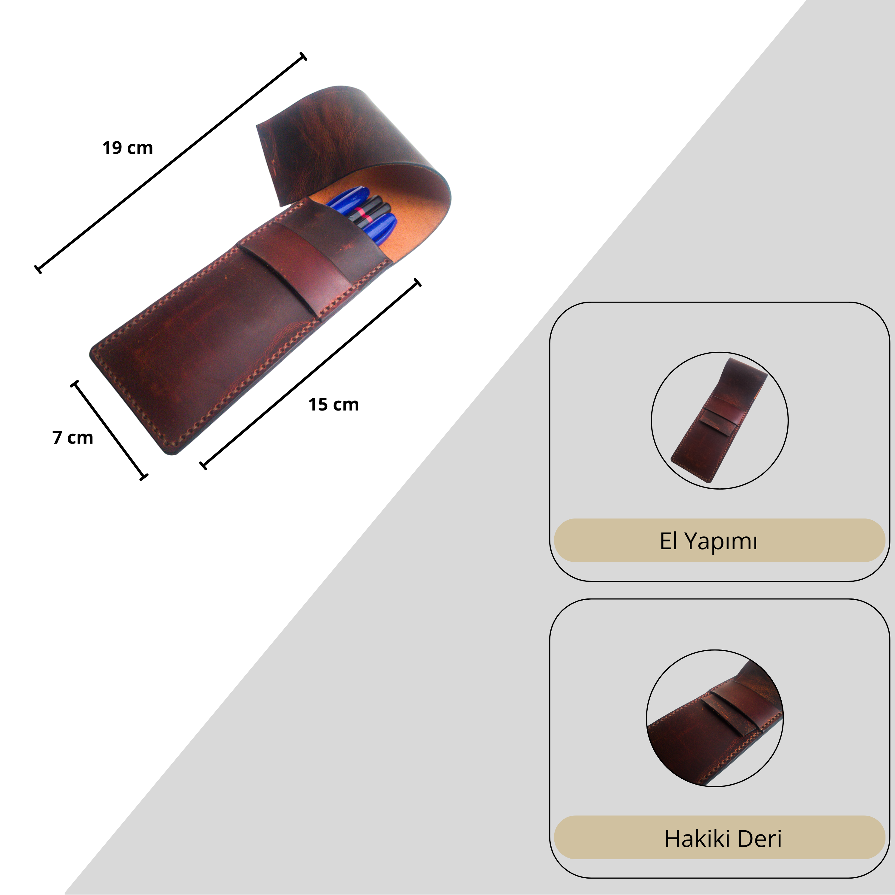 Hakiki crazy horse derisiyle el işçiliğiyle üretilmiştir. Benzersiz tasarımı ve kaliteli malzemesi sayesinde uzun yıllar boyunca kullanabileceğiniz bu kalemlik, her zaman şık ve modern bir görünüm sunacaktır. Kalemlerinizi güvenle taşıyabilir ve her an yanınızda bulundurabilirsiniz. Sağlam ve dayanıklı yapısıyla günlük kullanım için idealdir. Kişisel veya iş amaçlı kullanım için mükemmel bir seçenektir. Üstün işçilik ve kaliteli malzemesiyle bu kalemlik, size uzun yıllar hizmet edecektir.